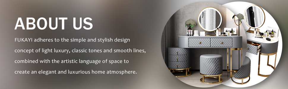 [Slate Tabletop, Solid Wood, PU Leather] The countertop is made of rock slabs and the texture runs through the entire countertop. Wear resistance, corrosion resistance, and no radiation! 100% E1-graded MDF solid wood drawers have no odor and have a longer service life. High quality craft leather, 30% more durable than others, soft and comfortable while sitting and applying your makeup.
