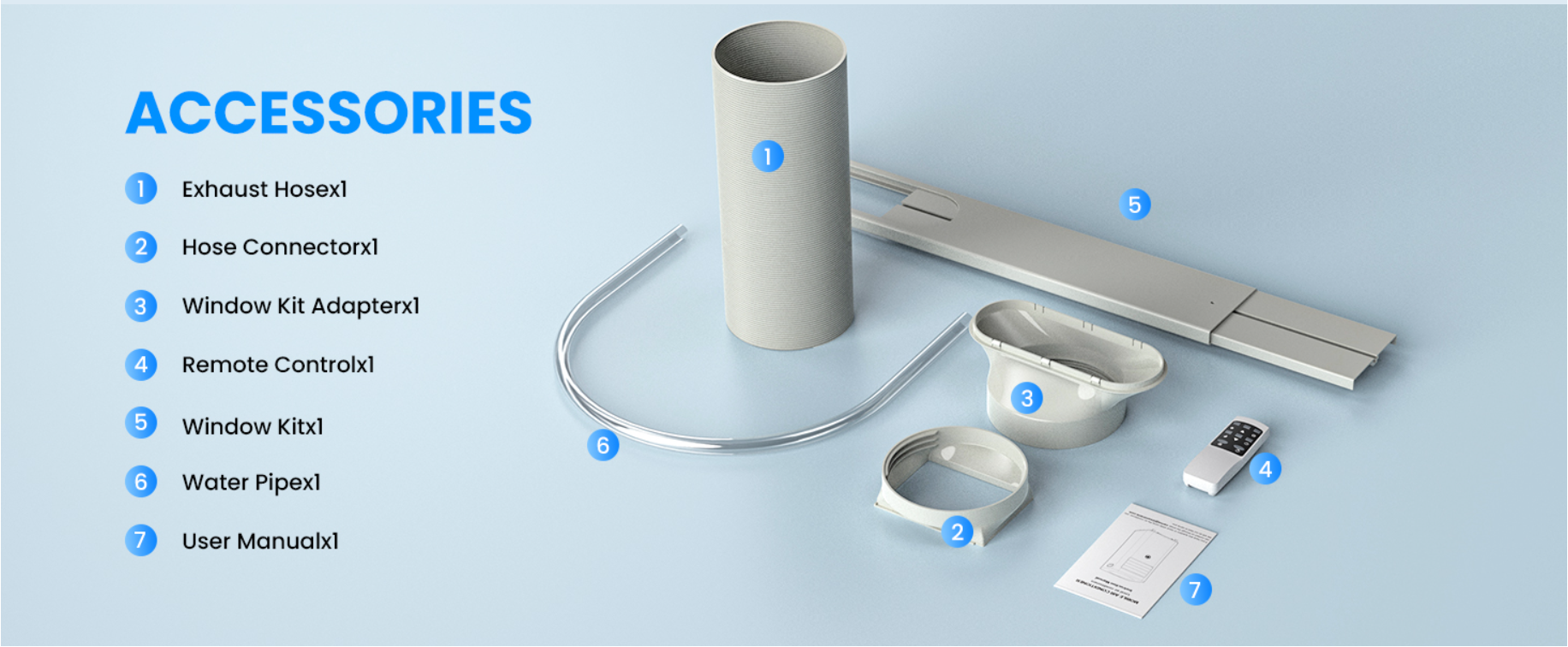 - 🆒【Smooth Move & Effortless Assembly】This air conditioner is designed with two built-in handles and four 360° casters for room-to-room mobility effortlessly in bedroom, office or in the cabin around your home. We offer window kits that are compatible with most sliding windows, catering you an effortless installment without drilling. And our unique plug design behind simplifies storage and transportation of the air conditioner.