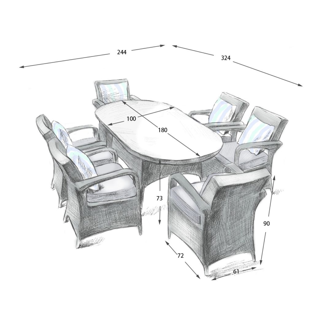 6 Savannah Armchairs 1.8 mtr Oval Set