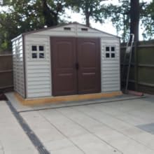 Duramax WoodSide 10 x 8 (8.02 m2) Plastic Garden Shed with 3 Fixed Windows & Metal Foundation Kit, Strong Metal Roof Structure Fire Retardant and Maintenance-Free Storage Shed - Ivory/Brown
