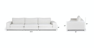 Style/typeIndustrialGeneral Dimensions32"H x 137.5"W x 45"DArm Height22"Seat Height16"Seat Depth25"Weight (lbs)285Upholstery ColorQuartz WhiteMaterialsKiln dried pine wood frame. High resiliency foam with fiber filling and feathers. Fabric - 10% Linen, 15% Cotton, 18% Polyester, 57% Viscose, Martindale score- 50,000 rubsSKU No.SKU14414Box Dimensions25"H x 52"W x 45"L25"H x 45"W x 43"L25"H x 52"W x 45"LCare