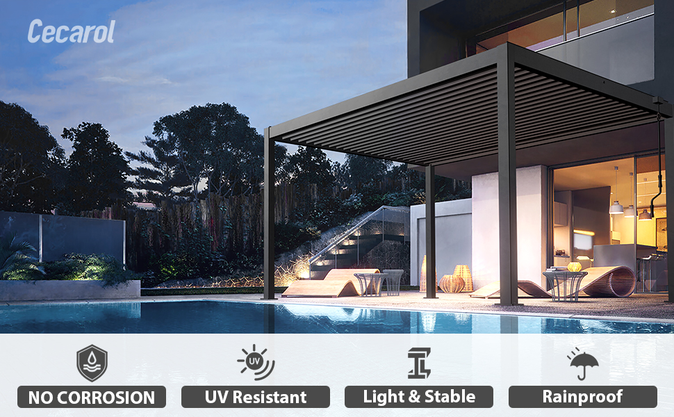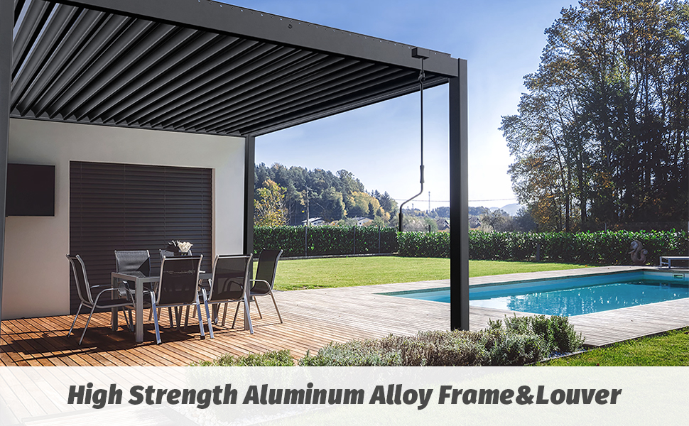 【NO CORROSION, Advanced Performance】HIGH STRENGTH ALUMINUM ALLOY FRAME&LOUVER, combined with strength STAINLESS STEEL and plastic accessories, ALL-CLIMATE powder coating, NO-CORROSION, never have worry with rust or hard to A&D