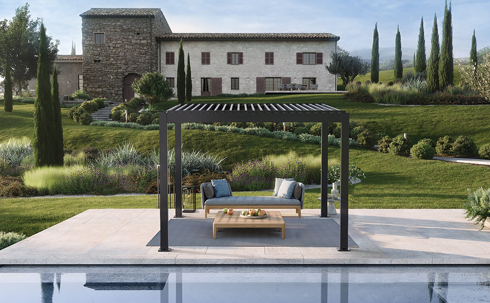 【Home&Garden】【BS】10'x10' NO Corrosion Louvered Pergola, High Strength Gazebo for Yard