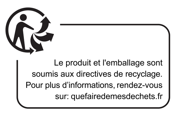Veuillez contribuer à la protection de l’environnement et respectez donc les dispositions légales attenantes. Nos équipements électriques et électroniques ne sont pas à mettre à la poubelle sans tri, mais doivent être triés et disposés dans aux lieux prévus à cet effet.
