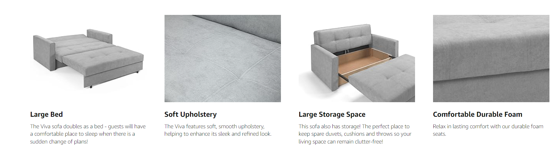 Honeypot Sofabed - Viva 2 Seater Sofabed with Storage - Grey Velvet Fabric Couch with Pull Out Double Sofabed | Setup Included | Made in EU | Built to Last (2 Seater, Plush Grey)