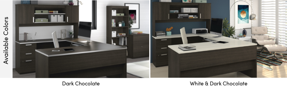 • 【Furniture】Bestar Ridgeley U-Shaped Executive Desk with Pedestal and Hutch, 65W, White Chocolate