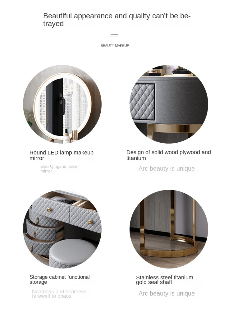 your makeup more refined and elegant every time, humanized design makes beauty everywhere. The mirror can be placed at will, and the spacious table top can be used as a writing desk.