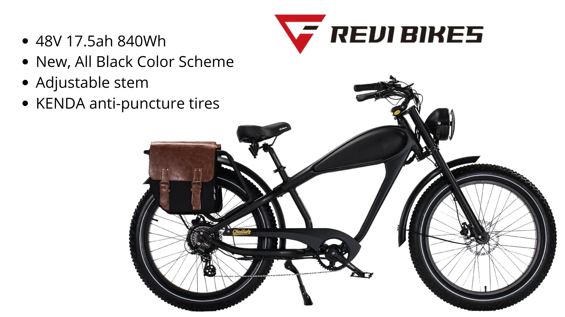 The Cheetah Cafe Racer 750W 48V Fat Tire e-bike by Revibikes is one of the most stylish cruiser electric bikes in the market.