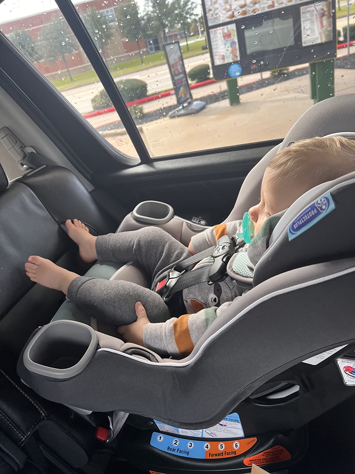 - Convertible car seat grows with your child from rear-facing harness ( 4-50lbs) to forward-facing harness (22-65 pounds)