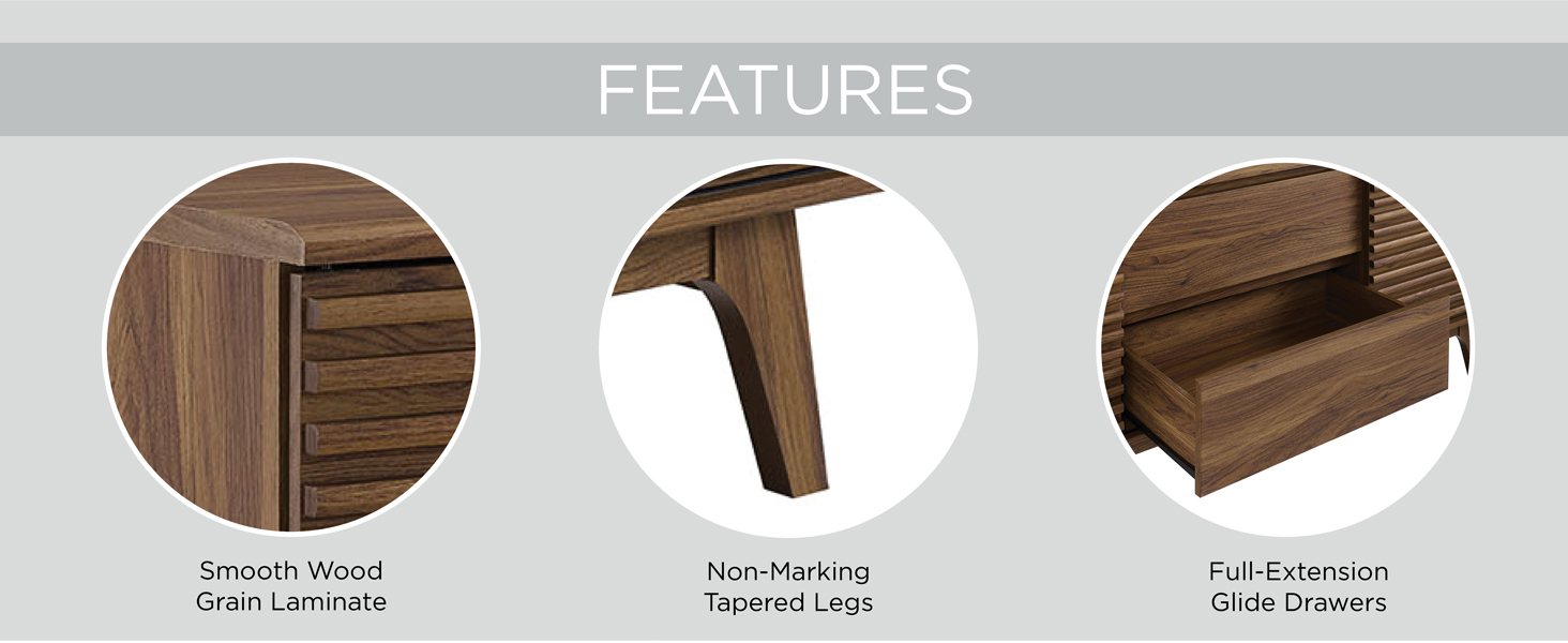 Tap into mid-century aesthetics With the render sideboard buffet display stand. This dining room buffet table features a durable particleboard frame with smooth Walnut grain laminate,four tapered wood legs,